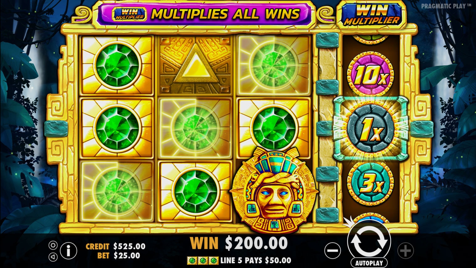 Alors que les machines à sous classiques standard vont aussi loin, Aztec Gems va encore plus loin. Il y a une quatrième bobine qui se trouve à côté des trois autres. Contrairement au reste, cependant, celui-ci ne contient aucun symbole réel. Au lieu de cela, après chaque tour, un multiplicateur de gains différent sera lancé. Ce multiplicateur sera appliqué à vos gains de ce tour.